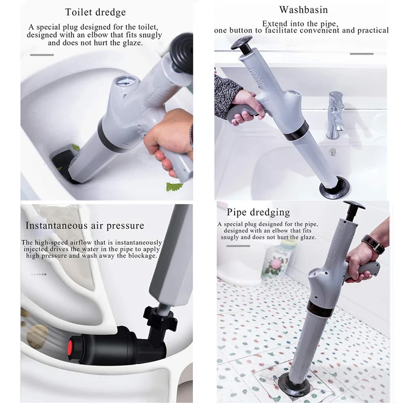 1. Powerful Blaster Gun ABS Sink Reusable Kitchen Dredge Tools Air Drain Auger Clog Bathroom High Pressure Cleaner Toilet Plunger