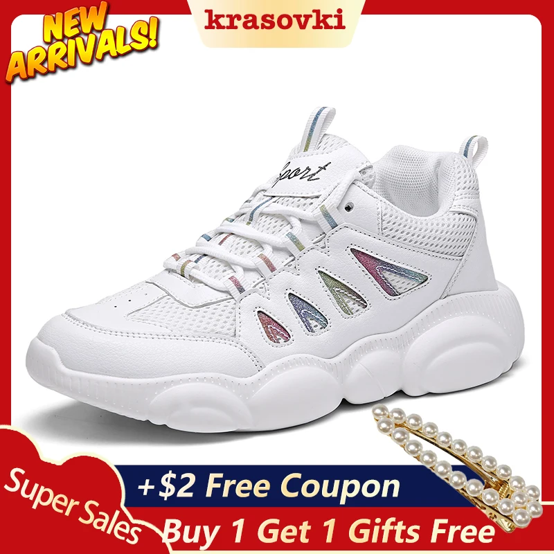 1. Krasovki Sneaker/женские модные дышащие кроссовки с толстой подошвой; Прямая поставка; повседневные женские кроссовки с круглым носком и сеткой на ...
