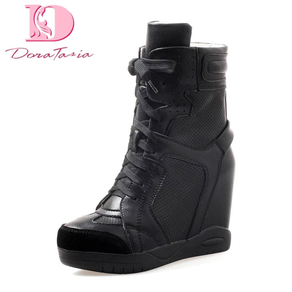 1. DoraTasia/Одежда высшего качества внутренняя на высоком каблуке женские ботинки женская обувь; Большие размеры 34–43 ботильоны на шнуровке Sneaker з...