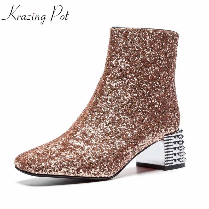 3. Krazing Pot/новинка из расшитой блестками ткани на среднем каблуке с квадратным носком dailywear basic boots Блестящий bling сказочной принцессы стиль женск...