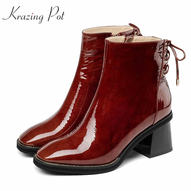 3. Krazing pot/Новое поступление 2018 полное зерно кожа лакированная плиссированные украшения basic boots Женщины Бабочка Зимние ботильоны L44