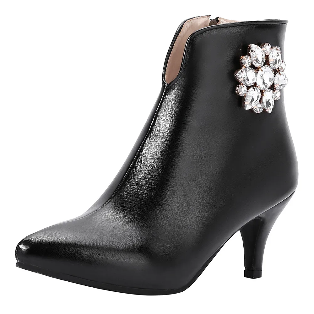 1. Женская модная обувь с боковой молнией, на высоком каблуке, с цветочным узором, со стразами, чистый ботильоны, женская обувь, zapatos de mujer boots @ L