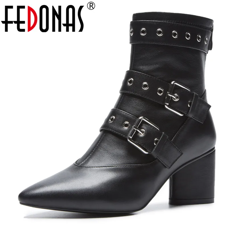 1. FEDONAS Брендовые женские пряжки Ботильоны из натуральной кожи в стиле панк Martin на высоком каблуке Женская обувь короткие мотоботы Basic boots