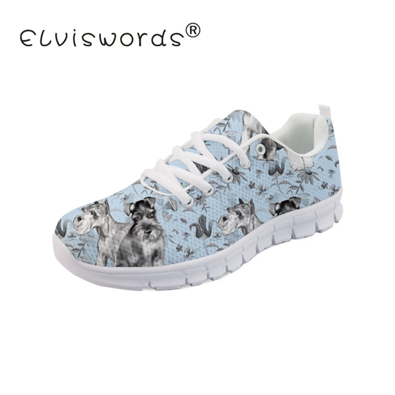 3. ELVISWORDS 3D Женские туфли-лодочки кроссовки Kawaii Шнауцер печати сетки обувь женская дышащая вулканизированной обуви Lace-Up Sneakers