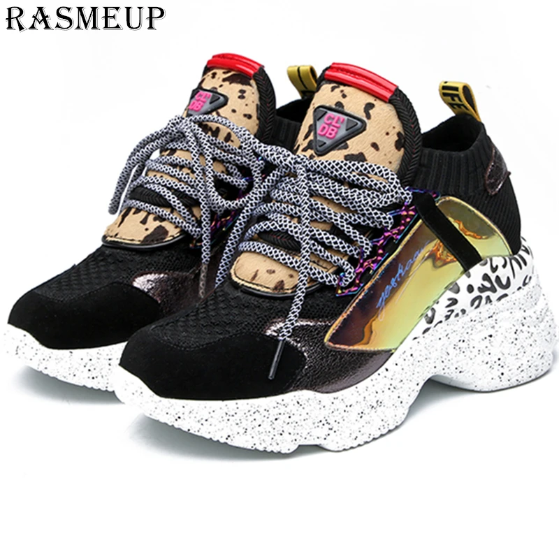 2. RASMEUP для женщин Коренастый уличные кроссовки вязать толстой подошве увеличение Sneaker 2019 Весна дышащая женская обувь женская
