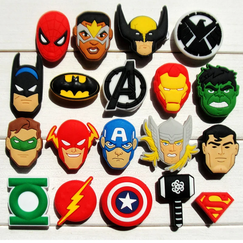 3. Горячая Новинка Горячая фильм 19 шт./компл. Мстители ПВХ обувь подвески обувь с мультяшками Пряжка подходит браслеты полосы Croc Clog JIBZ вечерние...