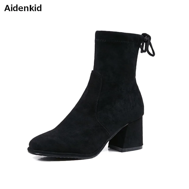 1. Aidenkid женские Модные ветер лодыжки Bootie Stretch Boot Для женщин сапоги необычный стиль на толстом среднем каблуке осень-зима женские короткие